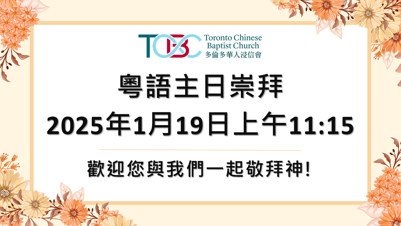 1-3 月粵語成人主日學:2025年1月5日- 3月30日,逢星期日9:45-10:45