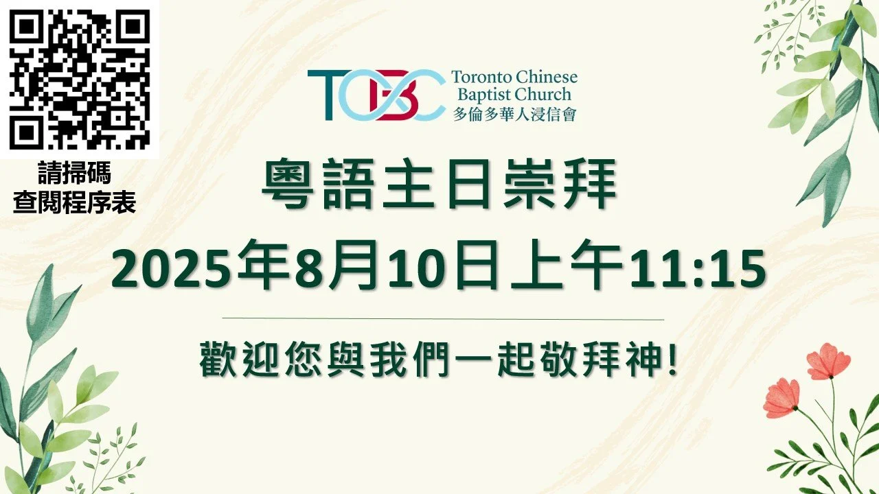 宣召:2025年8月10日粵語主日崇拜現在開始 詩篇 150:1,6