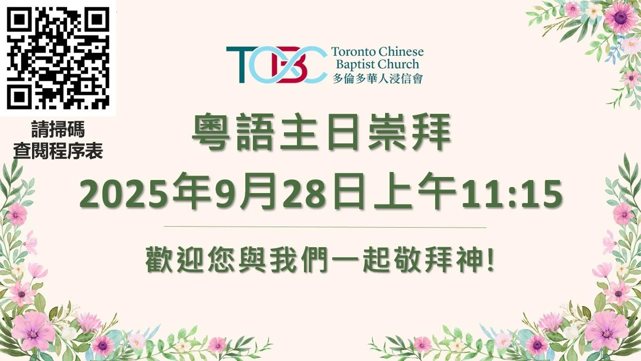 宣召:2025年9月28日粵語主日崇拜現在開始 詩篇118:24