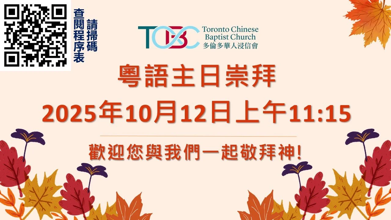 10月25日(星期六) 下午2:30-4:00 粵語培靈會—願你的國降臨