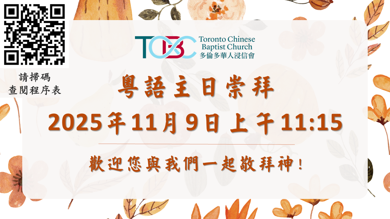宣召:2025年11月9日粵語主日崇拜現在開始 詩篇26:8,11