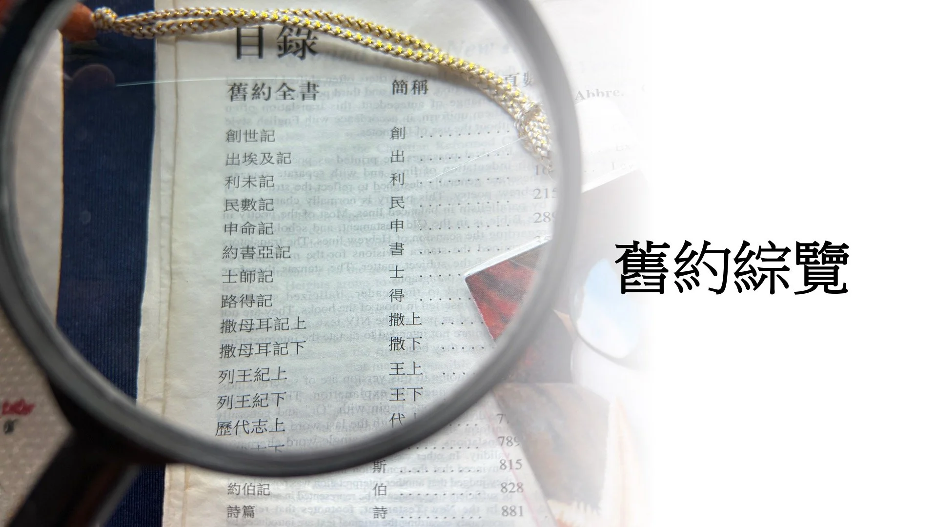 內容:帶領學員對舊約聖經有一個鳥瞰式的認知。透過介紹舊約聖經不同部份的書卷,及其歷史文化背景和寫作文體等,掌握每部書卷的主要內容,書卷間之關聯,及其與新約聖經的關係。除了從書卷中加深對神的屬性和救恩的整全認識之外,亦探討當中的教導對今天信徒的適切性。